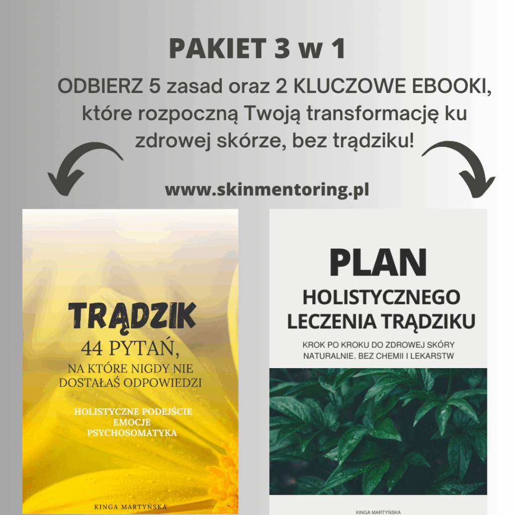 Połączyłam wiedzę z dietetyki, ajurwedy, medycyny chińskiej, ziołolecznictwa, biologii człowieka, psychologi, totalnej biologii, coachingu, duchowości oraz fizyki kwantowej. Abyś mogła wyleczyć trądzik SKUTECZNIE. Wszystko przekazuję w mojej ofercie.